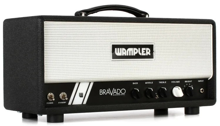 حال بهتر است با امپلی فایری که روی خود افکت هم دارد آشنا شویم. Wampler Bravado در واقع توسط یک طراح پدال دیزاین شدهاست. Brian Wampler نابغه دنیای پدال است! او درست میداند که یک امپلی فایر به چه پدالی نیاز دارد. در امپلی فایر Wampler Bravao Tube Combo یک جفت خروجی تیوب 6L6 داریم که قدرتی ۴۰ واتی از طریق اسپیکر ۱۲ اینچیاش ارائه میدهد.